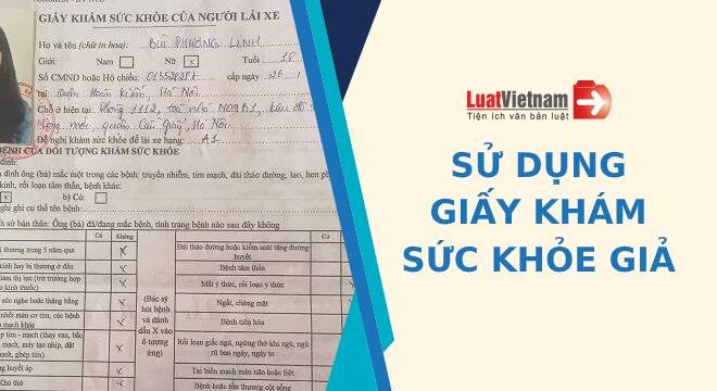 Như vậy, đối với người sử dụng tài liệu giả (giấy khám sức khỏe giả) để thực hiện hành vi trái pháp luật có thể bị phạt tiền từ 30 – 60 triệu đồng, hoặc phạt cải tạo không giam giữ hoặc phạt tù tùy vào tính chất, mức độ của hành vi vi phạm.